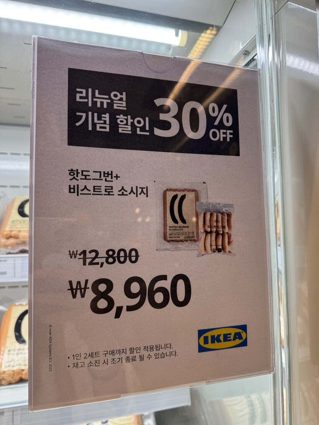 이케아 핫도그 유명한거 다 아시죠??? 1인 2세트까지만 제품 할인하고 있습니다.