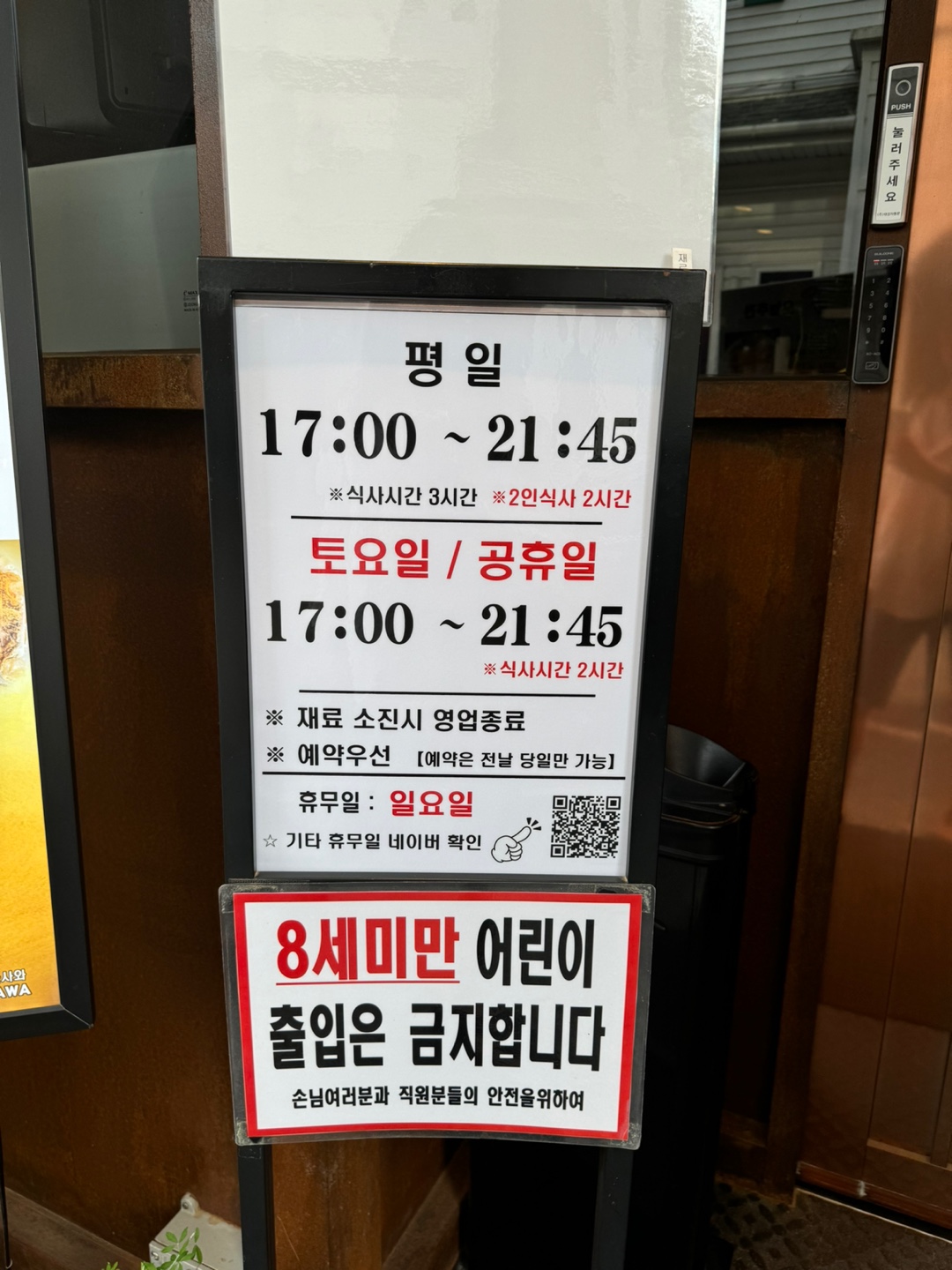 영업시간이 타 음식점 보다 짧고 재료 소진시 영업종료를 하니 예약하시고 방문하시기를 추천드립니다.