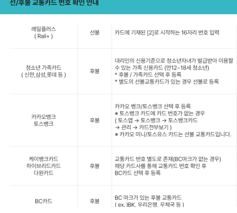 - 공항버스, 시외버스, 시티투어, 열차 (KTX, SRT, 새마을호, 무궁과 호, 누리로 등) 택시등은 지원불가