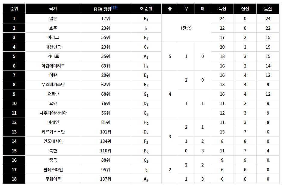 아래의 표로 현재 우리나라 상황과 아시아 전역 예선상황에 대해서도 살펴보시길 바랍니다.