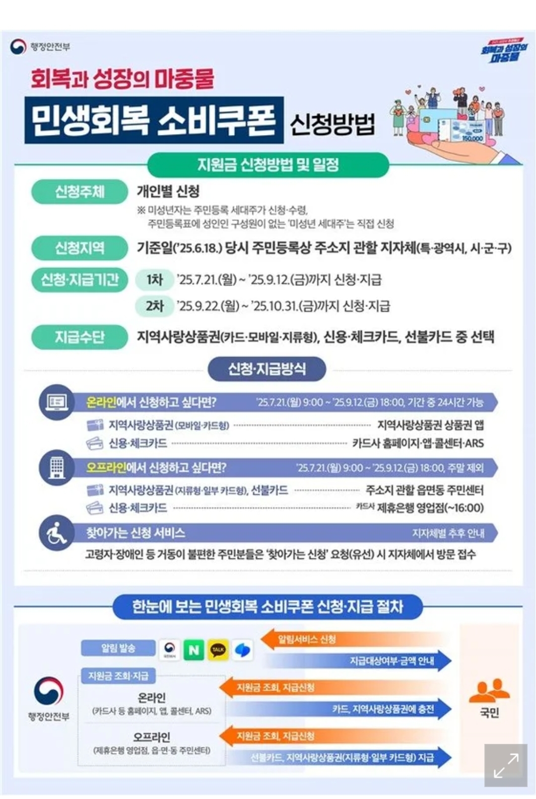 - 다음 날 지급, 지류/선불카드는 행정복지센터 방문 필요